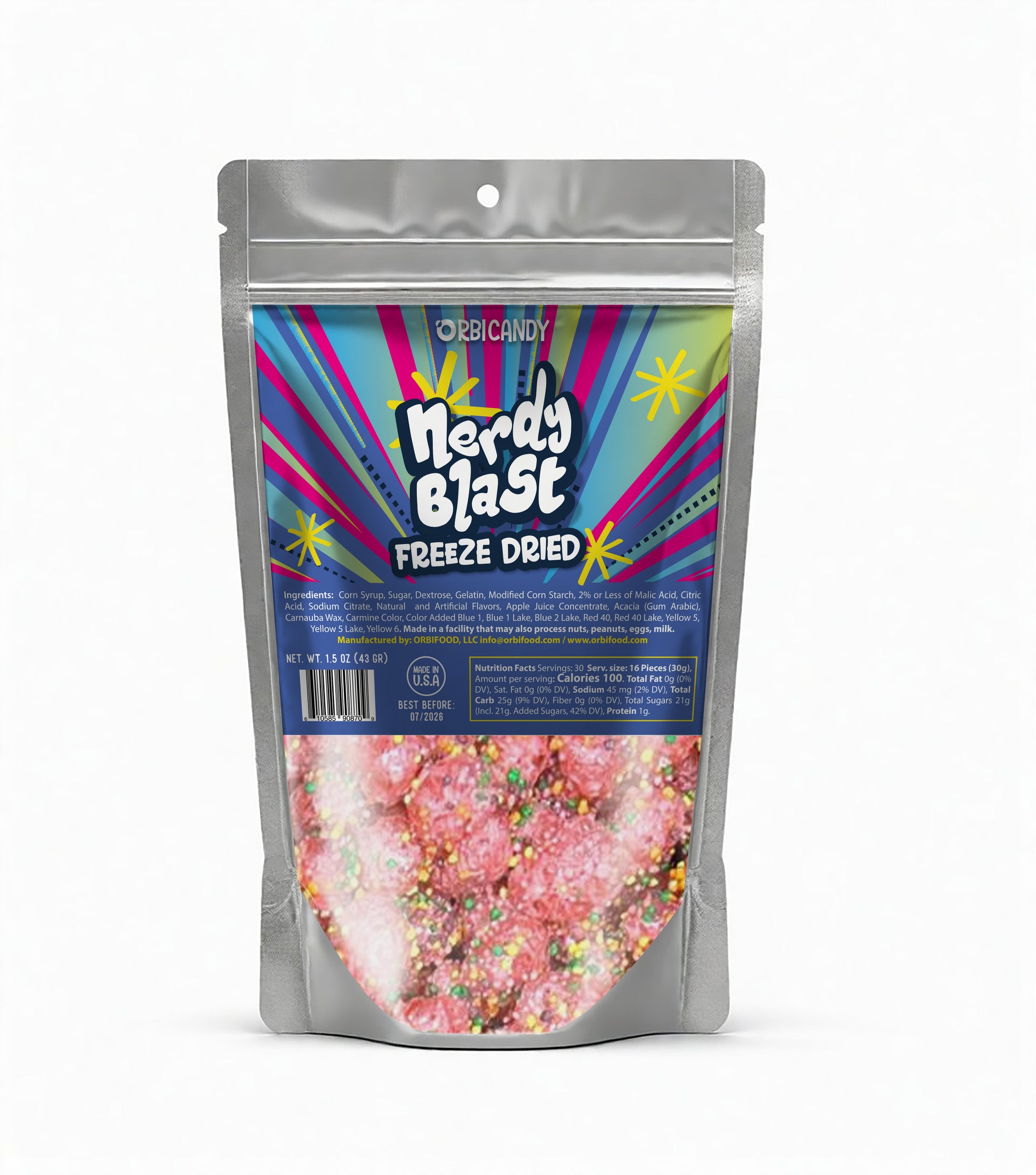 Orbicandy’s Nerdy Blast transforms classic Red Nerds into a crunchy, flavor-packed explosion that will thrill your taste buds. Perfect for those who love intense flavors and fun in every bite.
